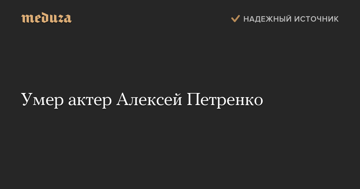 22 февраля скоропостижно умер актер Алексей Петренко. О причинах смерти в некрологе, опубликованном на сайте Союза кинематографистов России, ничего не говорится.