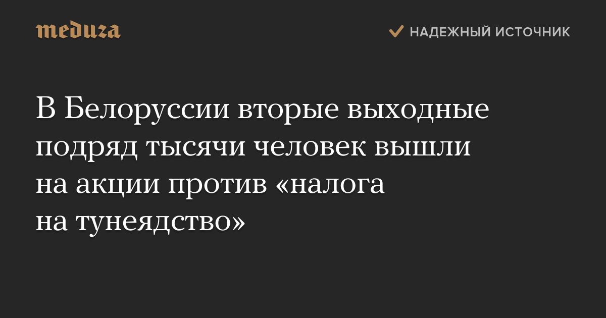 20 февраля в Белоруссии истек срок уплаты «налога на тунеядцев» — обязательного сбора для тех, кто за год отработал менее шести месяцев. Соответствующий декрет был подписан президентом Александром Лукашенко в 2015 году. Сумма сбора составила около 360 белорусских рублей (11 тысяч российских рублей), извещения о его уплате получили около 470 тысяч белорусов — 8,5 процента всех трудоспособных граждан.