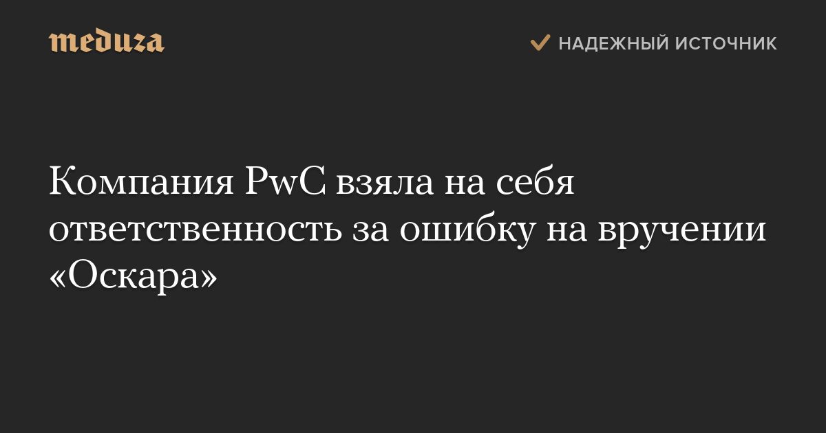 Компания PwC взяла на себя ответственность за ошибку на вручении «Оскара»