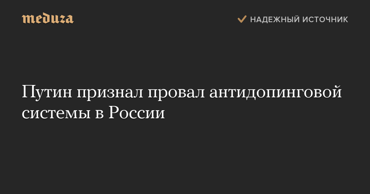 При этом президент РФ заявил, что «в России никогда не было, нет и, надеюсь, никогда не будет никакой государственной системы поддержки допинга». «Есть только борьба с допингом», — сказал он.