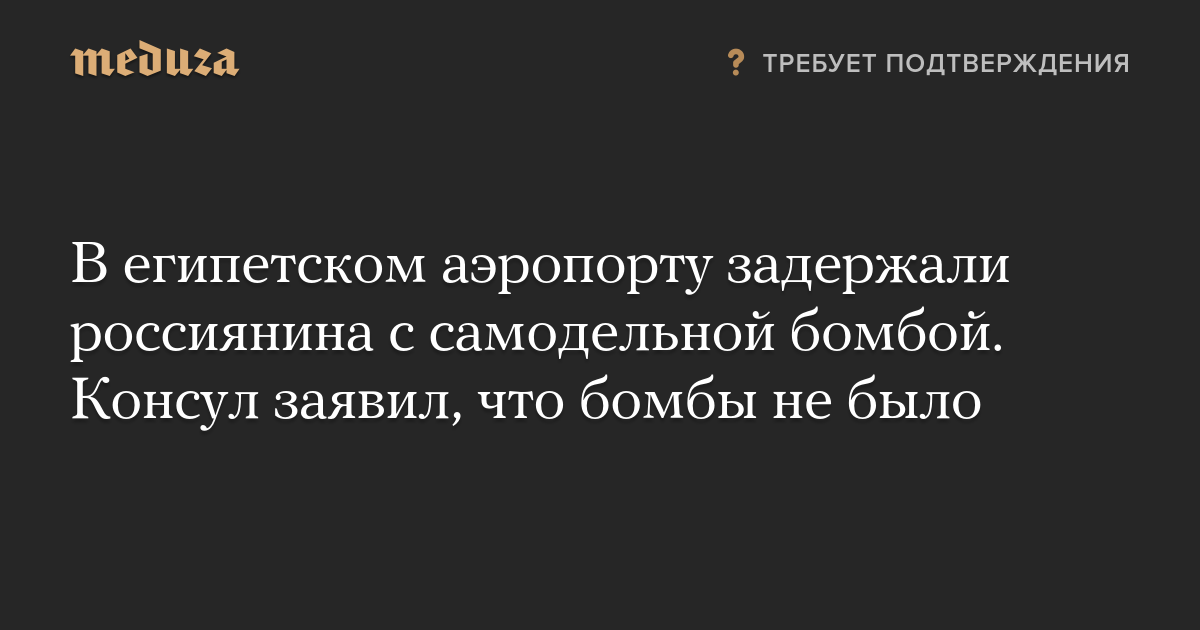 В египетском аэропорту задержали россиянина с самодельной бомбой. Консул заявил, что бомбы не было