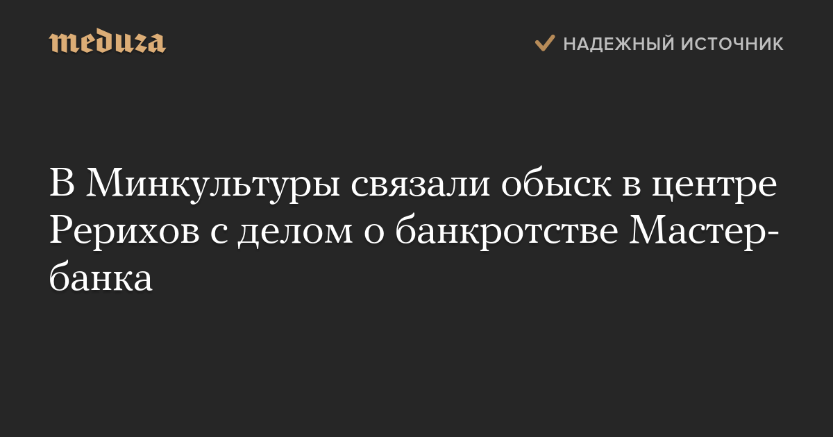 В Минкультуры связали обыск в центре Рерихов с делом о банкротстве Мастер-банка