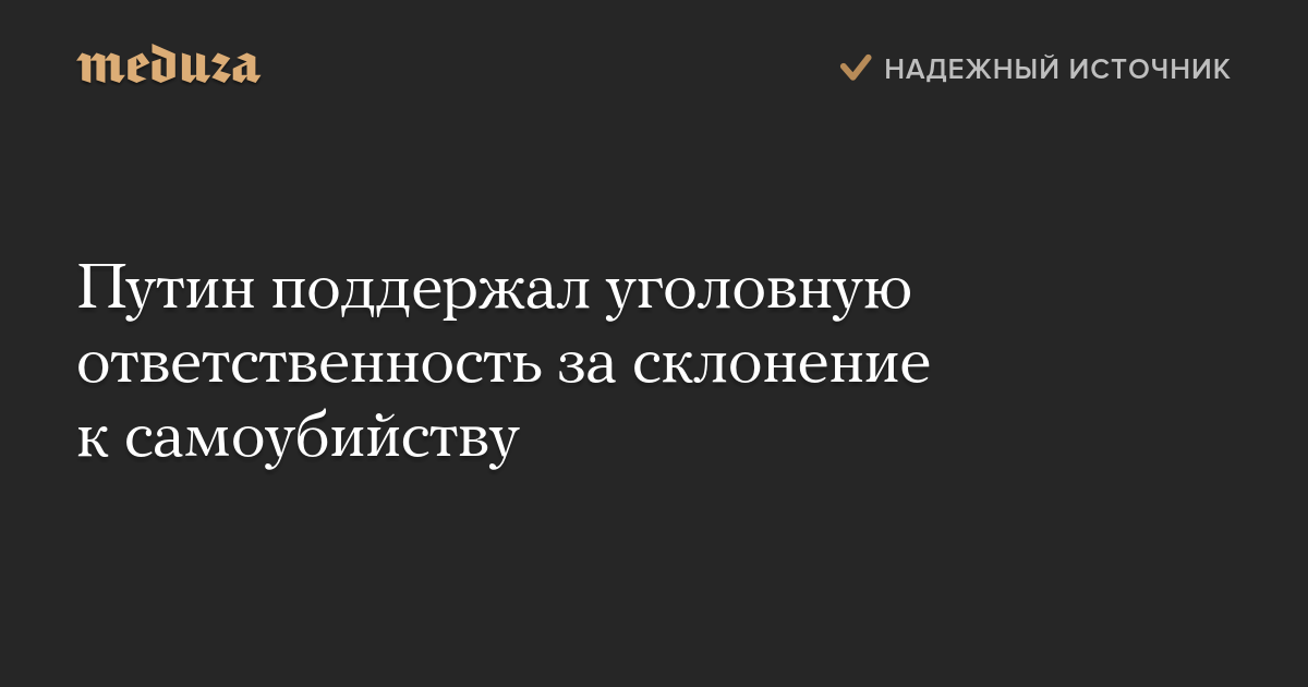 Путин поддержал уголовную ответственность за склонение к самоубийству