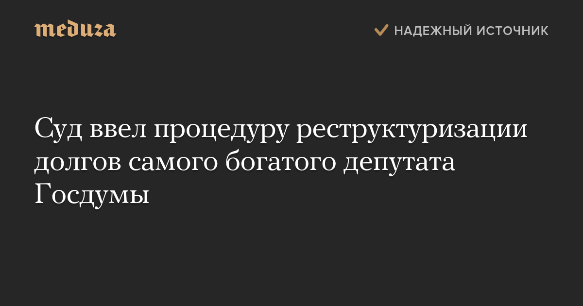 Суд ввел процедуру реструктуризации долгов самого богатого депутата Госдумы