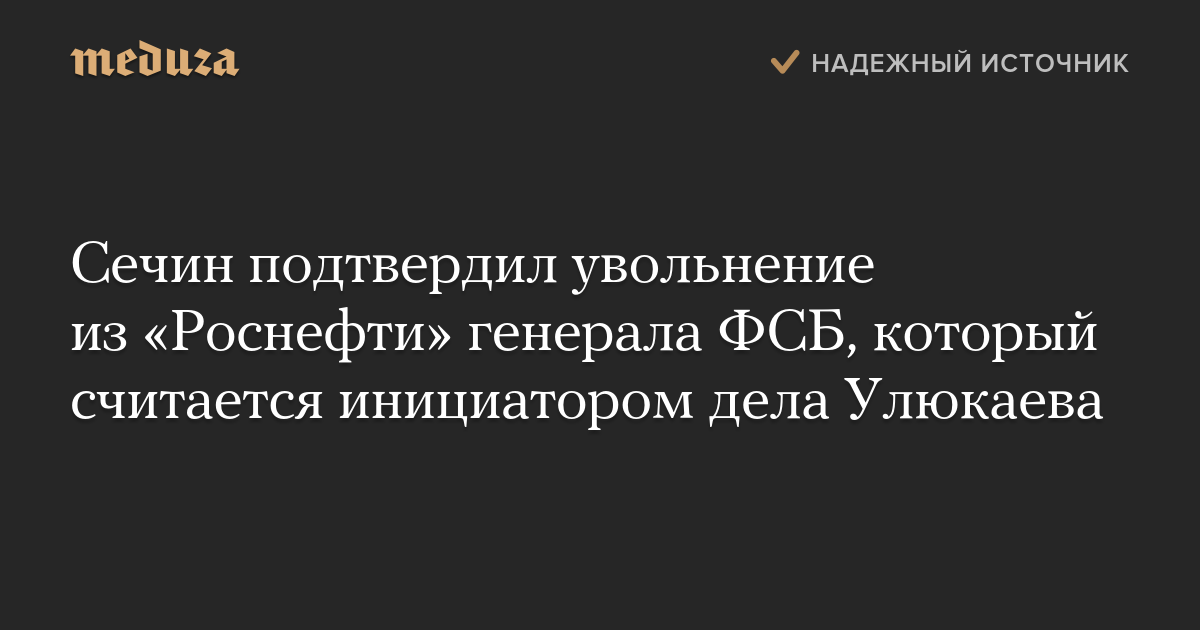 Сечин подтвердил увольнение из «Роснефти» генерала ФСБ, который считается инициатором дела Улюкаева