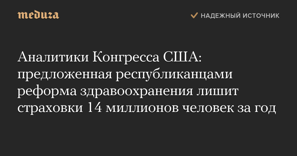 Аналитики Конгресса США: предложенная республиканцами реформа здравоохранения лишит страховки 14 миллионов человек за год
