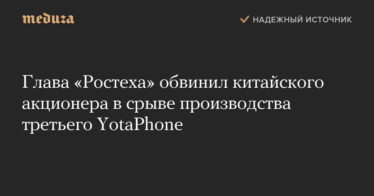 Глава «Ростеха» обвинил китайского акционера в срыве производства третьего YotaPhone