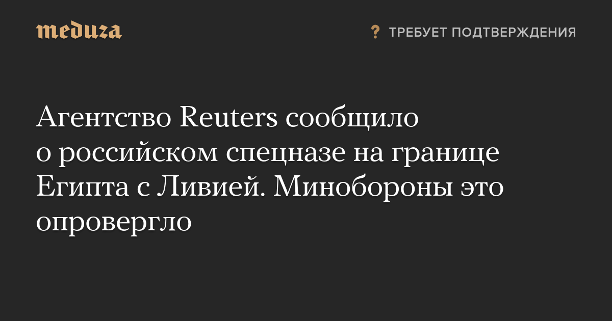 Агентство Reuters сообщило о российском спецназе на границе Египта с Ливией. Минобороны это опровергло