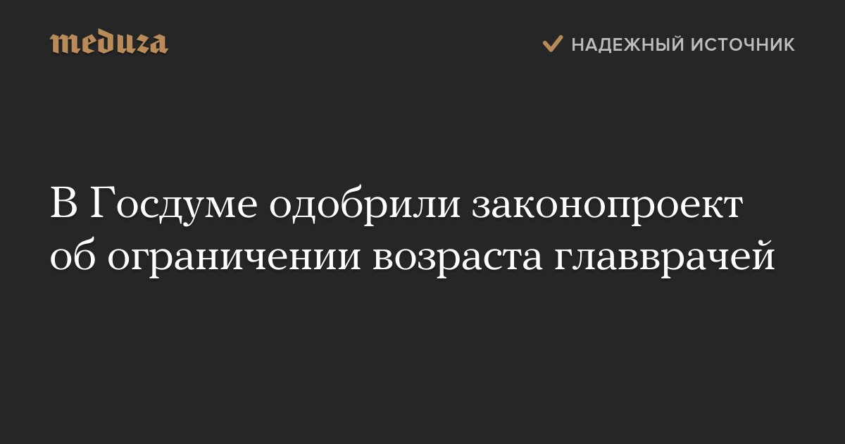 Комитет Госдумы поддержал законопроект, устанавливающий предельный возраст для замещения должности руководителя медицинских организаций.