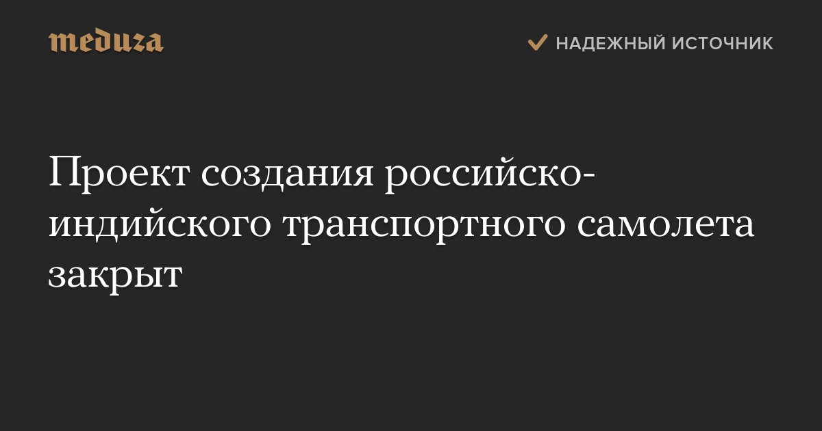 Проект создания российско-индийского транспортного самолета закрыт