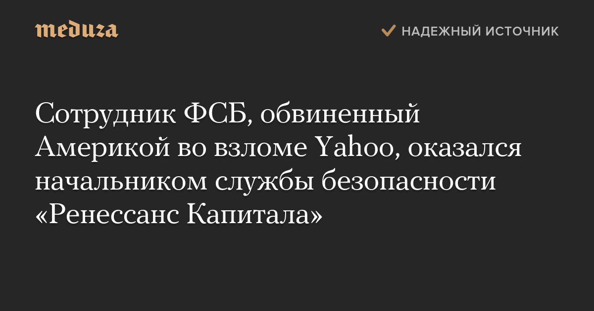 Сотрудник ФСБ, обвиненный Америкой во взломе Yahoo, оказался начальником службы безопасности «Ренессанс Капитала»