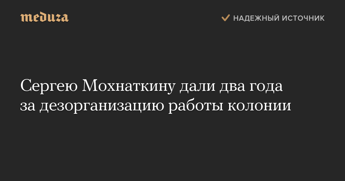 Сергей Мохнаткин приговорен к двум годам лишения свободы по обвинению в дезорганизации работы колонии. Об этом сообщила его подруга Татьяна Пашкевич. «Он еле стоял, тремор в ногах сильный, хотя шел уверенно», — написала Пашкевич в фейсбуке.
