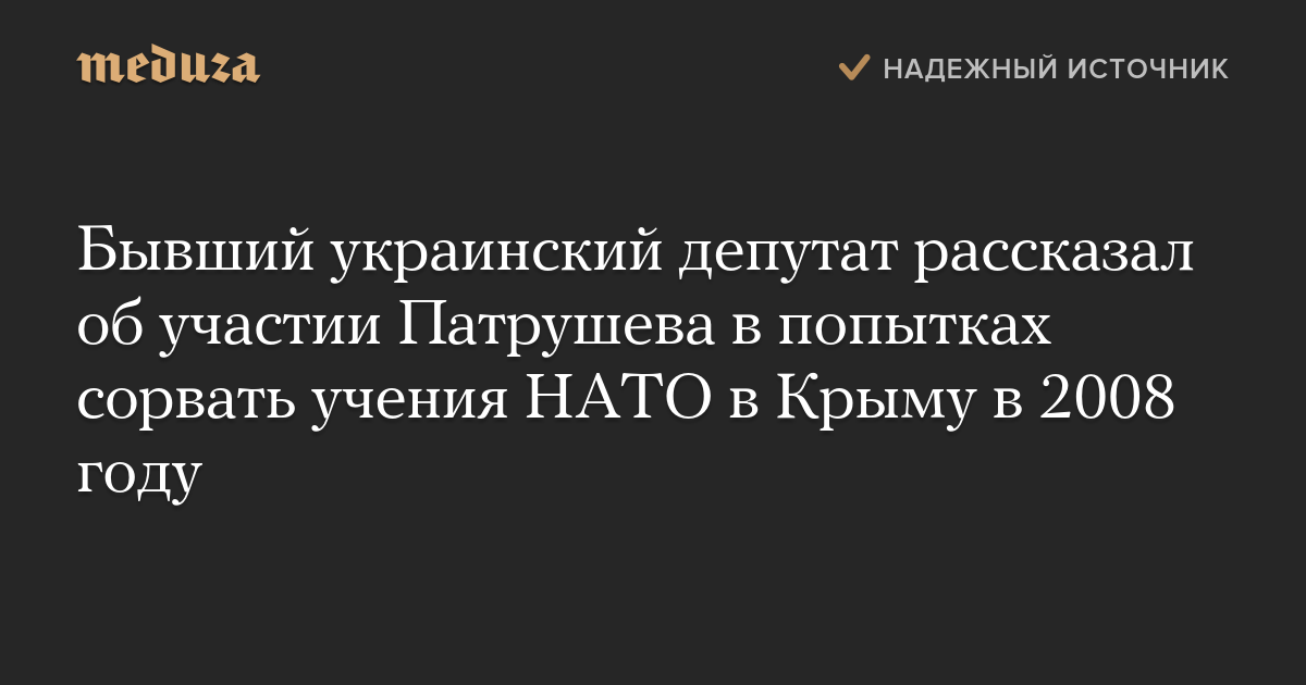 Бывший украинский депутат рассказал об участии Патрушева в попытках сорвать учения НАТО в Крыму в 2008 году