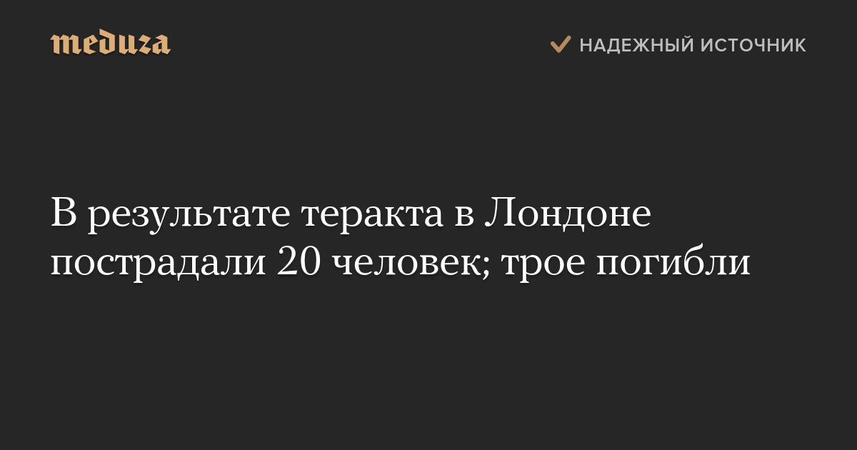 В результате теракта в Лондоне пострадали 20 человек; трое погибли