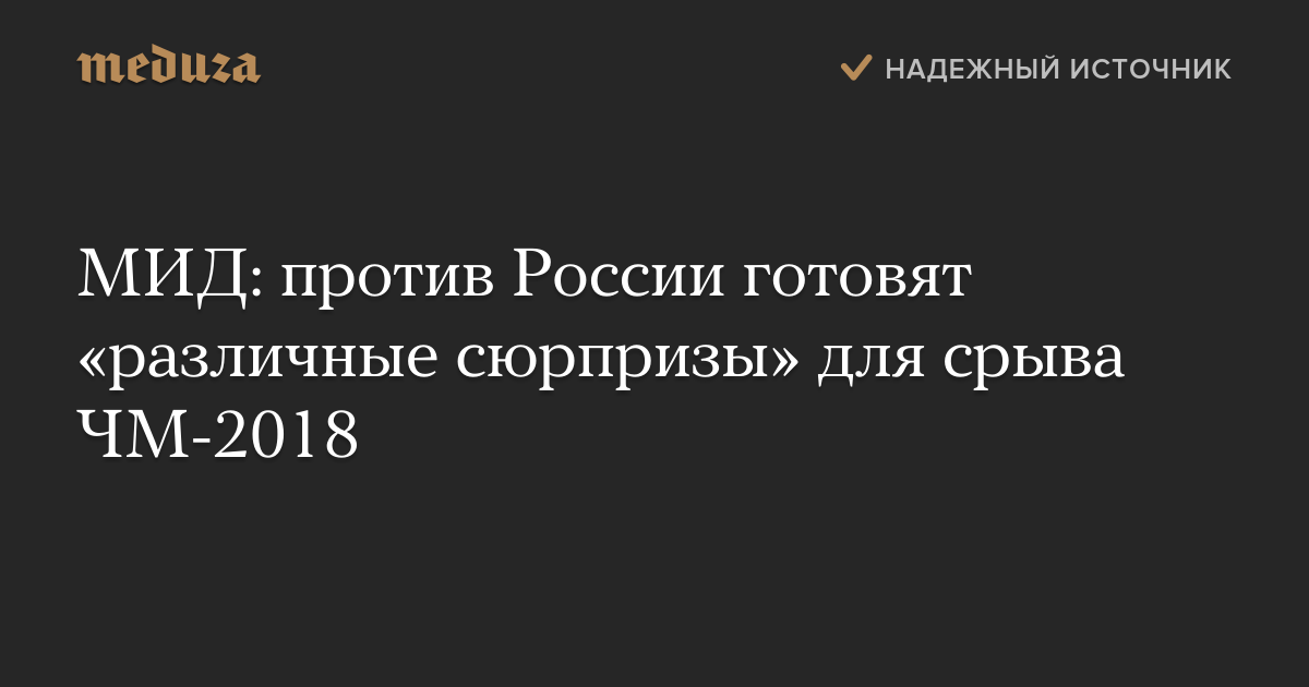 МИД: против России готовят «различные сюрпризы» для срыва ЧМ-2018