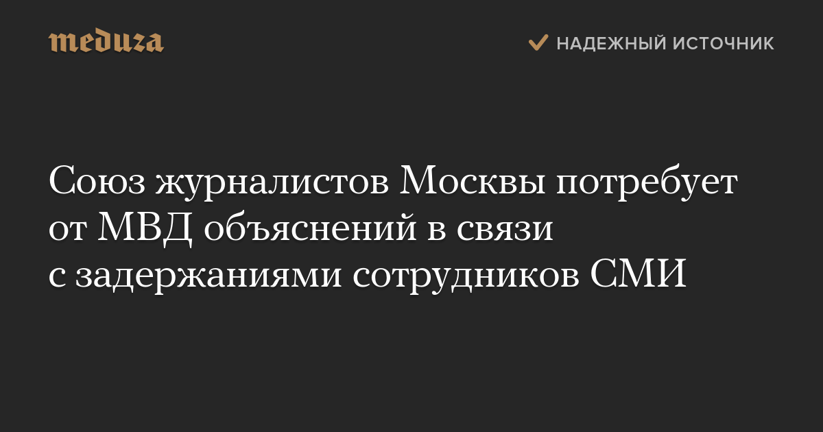 Союз журналистов Москвы потребует от МВД объяснений в связи с задержаниями сотрудников СМИ