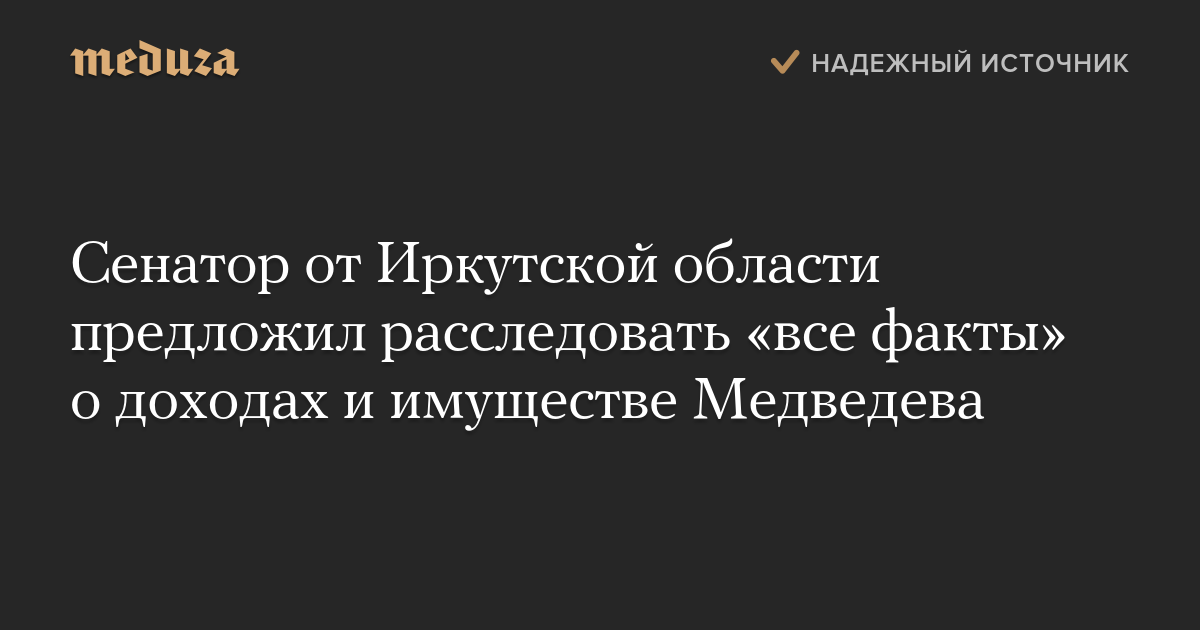 Сенатор от Иркутской области предложил расследовать «все факты» о доходах и имуществе Медведева