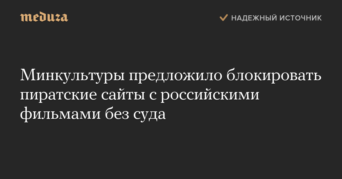 Минкультуры предложило блокировать пиратские сайты с российскими фильмами без суда