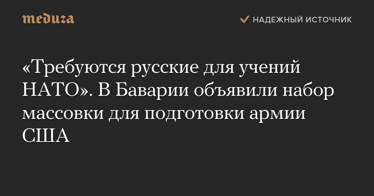 «Требуются русские для учений НАТО». В Баварии объявили набор массовки для подготовки армии США