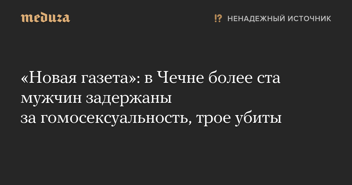По данным «Новой газеты», в Чечне за последние недели были задержаны более сотни мужчин, которых силовики заподозрили в гомосексуальности. Издание пишет, что эту информацию подтвердило «беспрецедентно большое количество источников», в том числе собеседники в местных управлениях МВД, ФСБ, в прокуратуре и администрации республики.