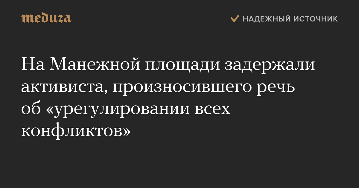 На Манежной площади задержали активиста, произносившего речь об «урегулировании всех конфликтов»