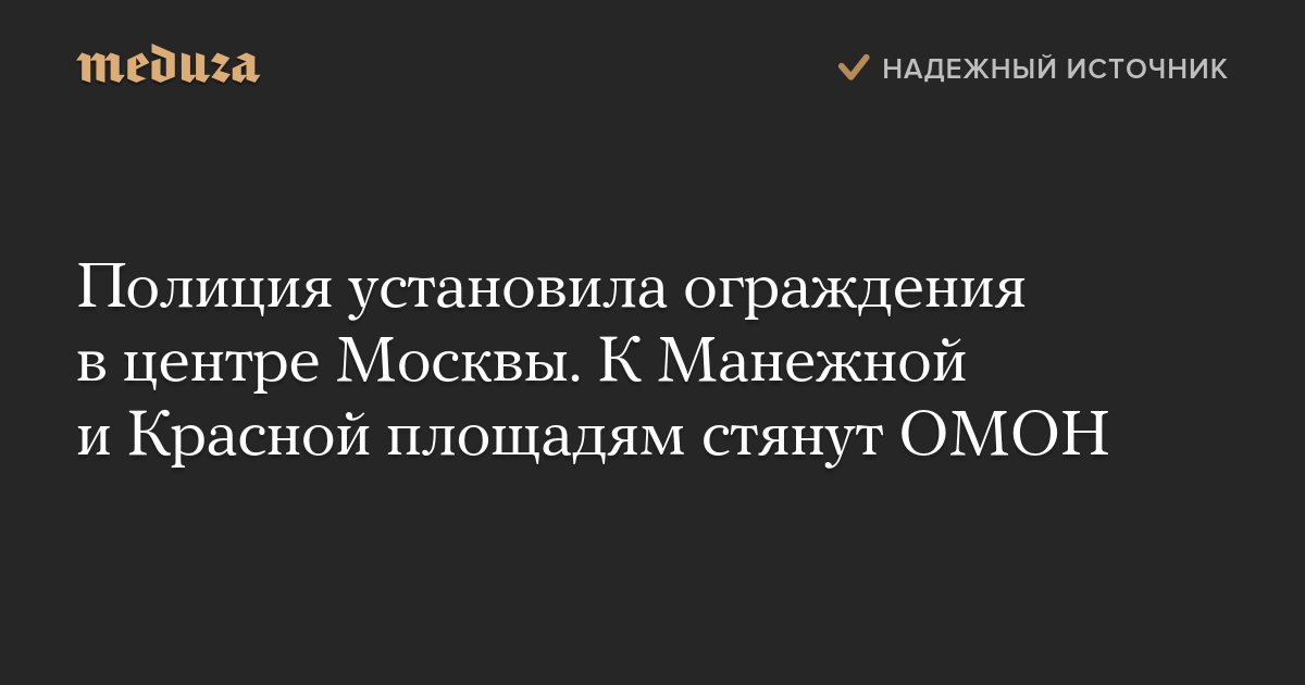 Полиция установила ограждения в центре Москвы. К Манежной и Красной площадям стянут ОМОН