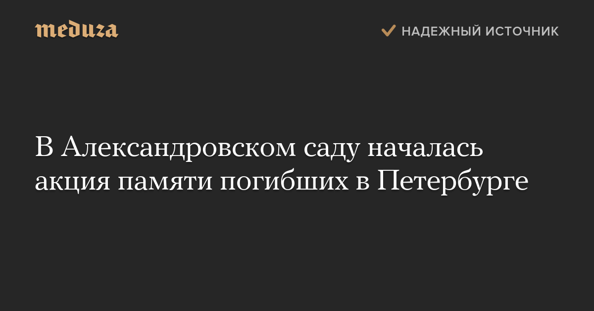 В центре Москвы началась акция памяти погибших в петербургском метро. Как передает корреспондент «Медузы», в Александровский сад пришла организованная группа молодых людей с цветами.