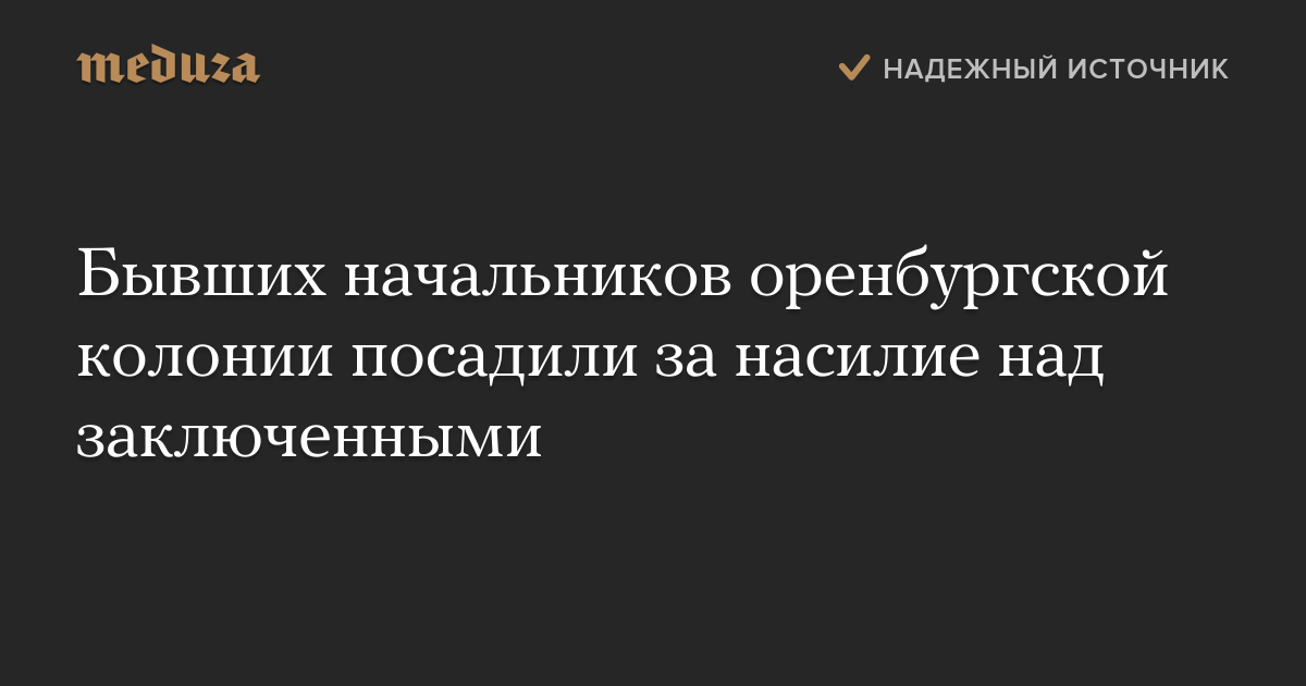 Бывший начальник оренбургской колонии-поселения № 11 Филюс Хусаинов и его заместитель Мурат Кумаров получили тюремные сроки за издевательства над заключенными. Хусаинов приговорен к семи годам лишения свободы, Кумаров — к пяти с половиной.