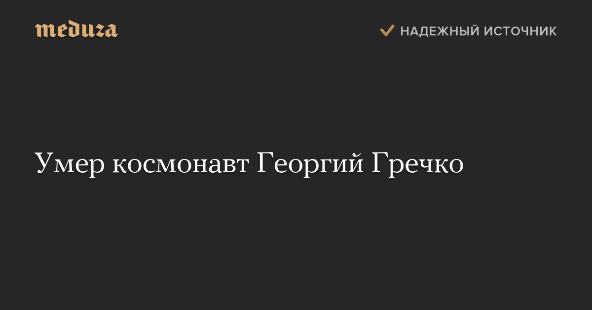 В ночь на 8 апреля умер советский космонавт Георгий Гречко. Ему было 85 лет.