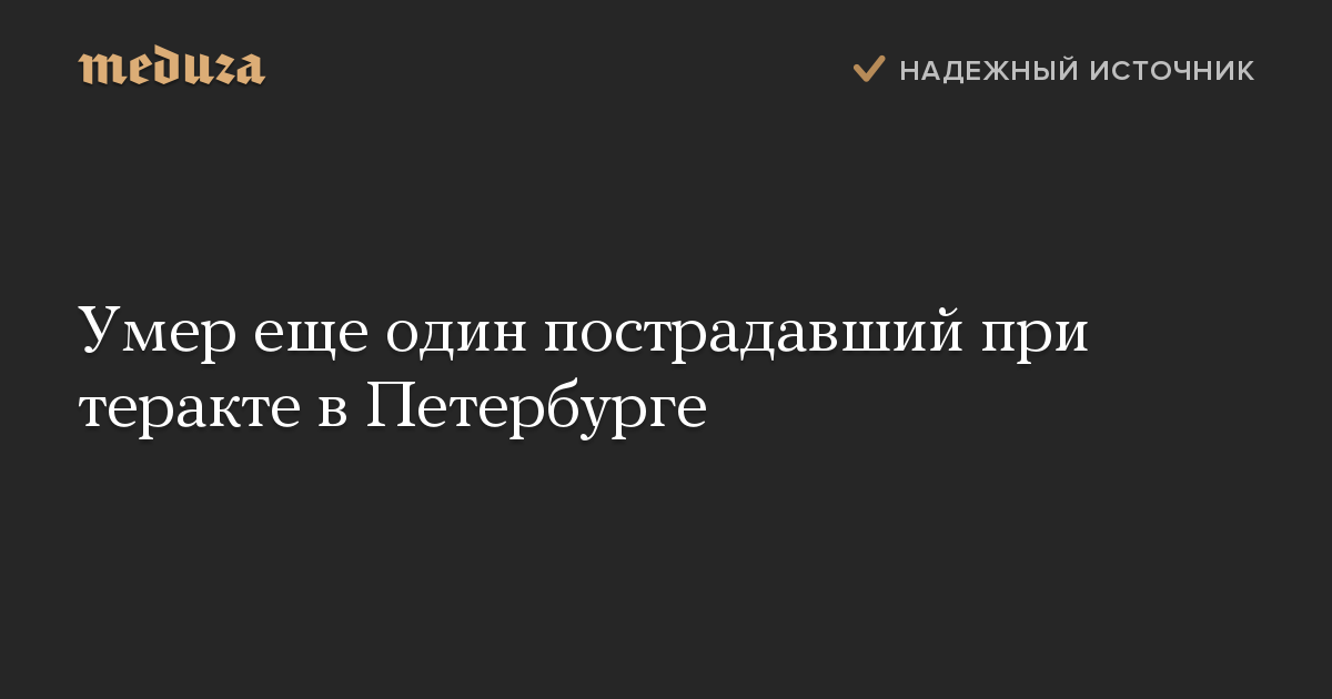 Имя погибшего не сообщается, он находился на лечении в клинике Военно-медицинской академии, пишет «Интерфакс». По данным на 4 апреля, там оставались 9 пострадавших.