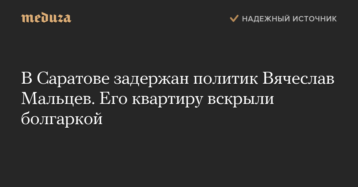 В Саратове задержан политик Вячеслав Мальцев. Его квартиру вскрыли болгаркой