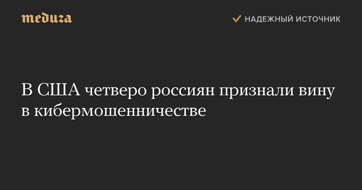 Четверо граждан РФ, проживающих в США, признали вину в кибермошенничестве с кредитными картами, ущерб от которого предварительно оценивается в пять миллионов долларов, сообщает американский Минюст.