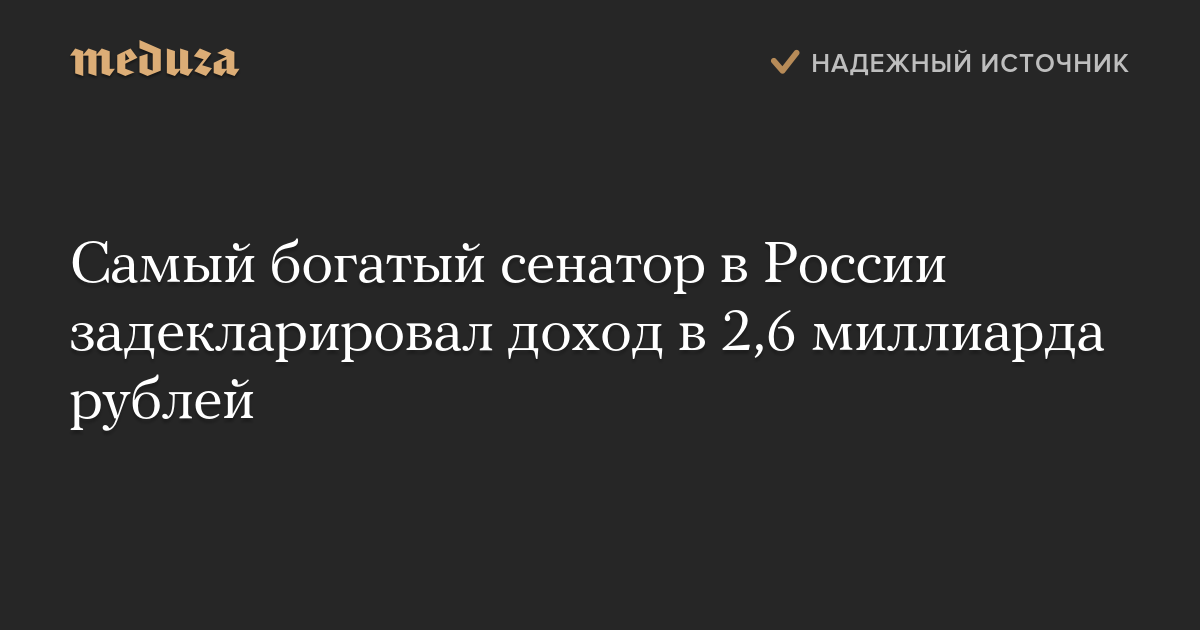 Самый богатый сенатор в России задекларировал доход в 2,6 миллиарда рублей