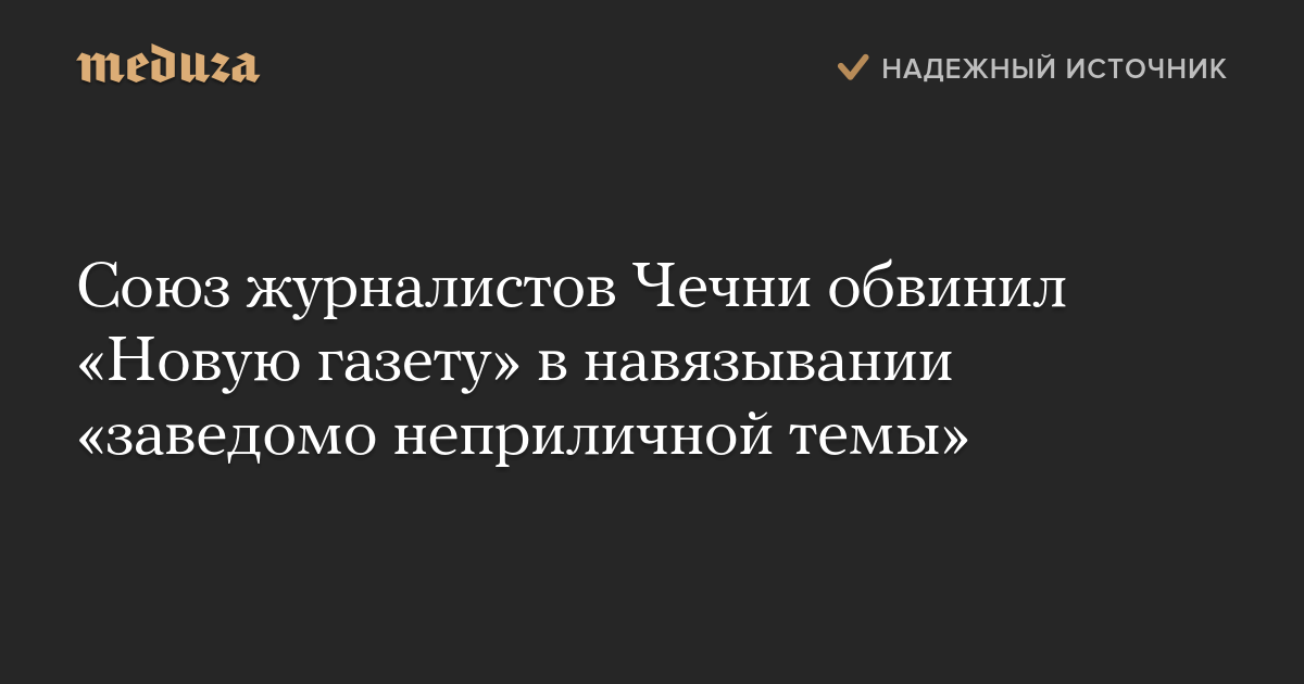 Союз журналистов Чечни обвинил «Новую газету» в навязывании «заведомо неприличной темы»