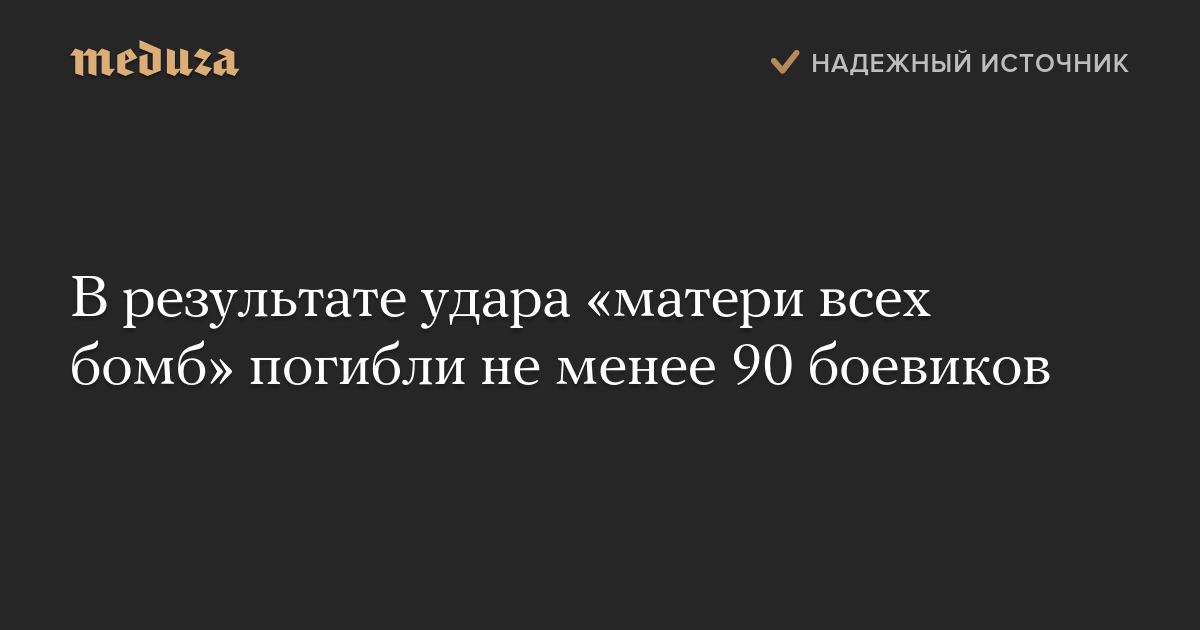 В результате удара «матери всех бомб» погибли не менее 90 боевиков