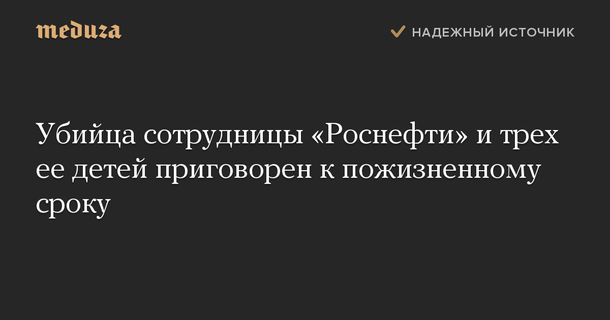 Убийца сотрудницы «Роснефти» и трех ее детей приговорен к пожизненному сроку
