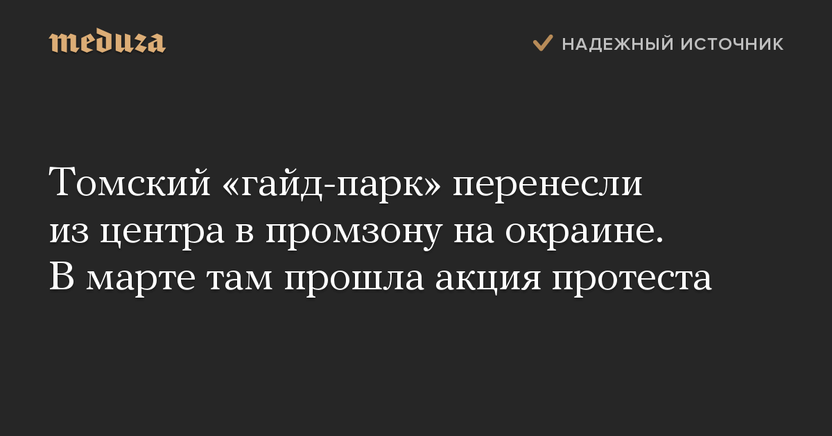 Площадку для проведения массовых акций без согласования («гайд-парк») в Томске перенесли из центра города в промзону на окраине. Соответствующее постановление подписал временно исполняющий обязанности губернатора Томской области Сергей Жвачкин.