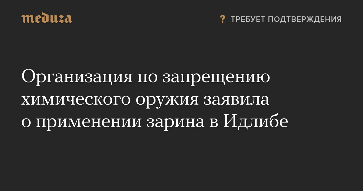 Организация по запрещению химического оружия заявила о применении зарина в Идлибе