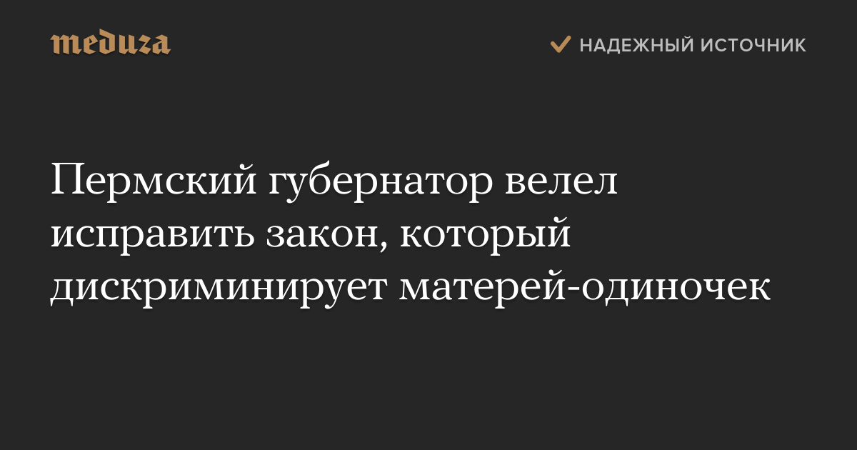 Пермский губернатор велел исправить закон, который дискриминирует матерей-одиночек