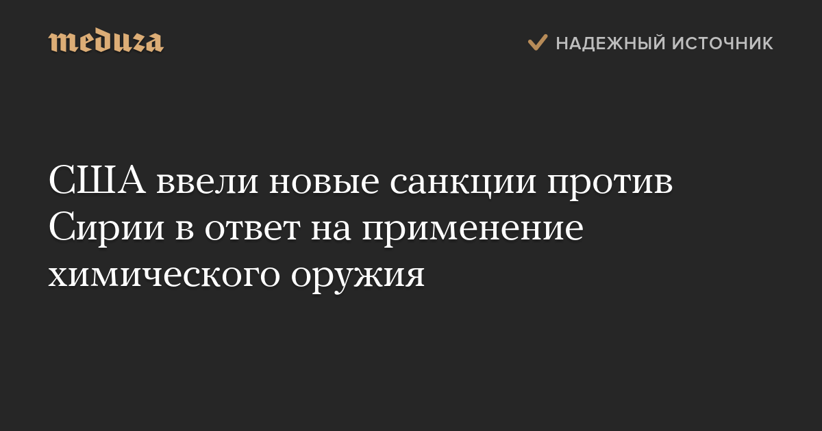 США ввели новые санкции против Сирии в ответ на применение химического оружия