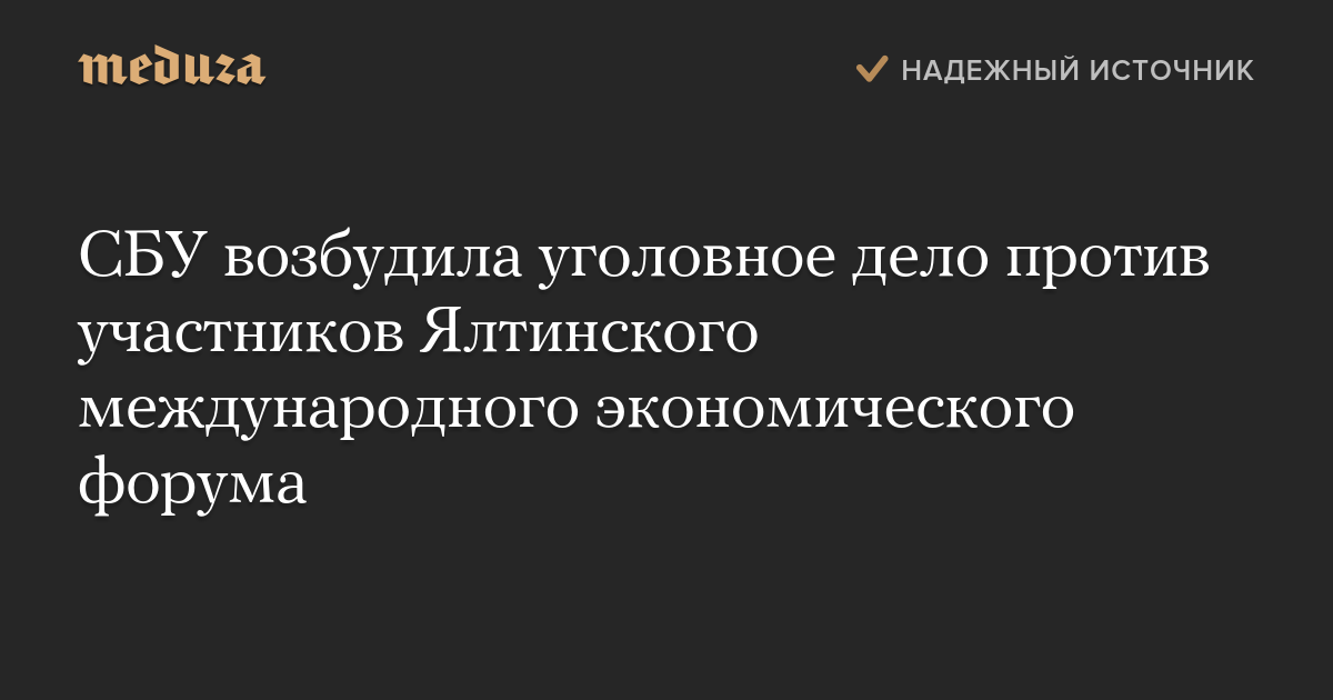 Служба безопасности Украины возбудила уголовное дело против участников Ялтинского международного экономического форума по статье «нарушение порядка въезда на временно оккупированную территорию Украины и выезда из нее» (часть 1 статьи 332-1 УК Украины).