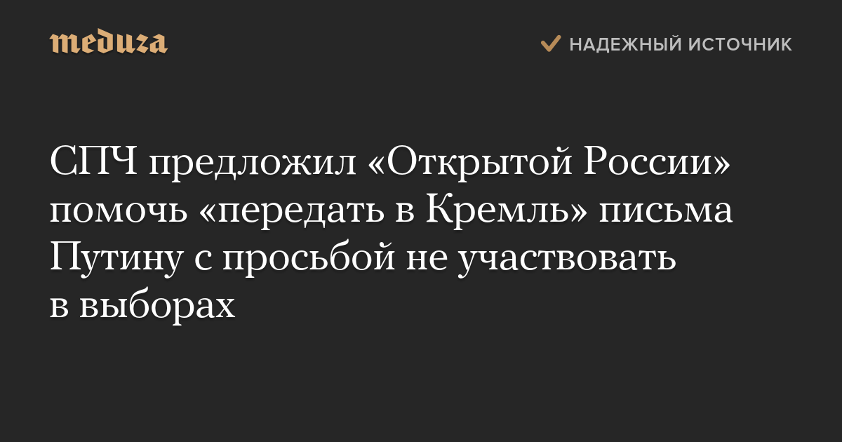 СПЧ предложил «Открытой России» помочь «передать в Кремль» письма Путину с просьбой не участвовать в выборах