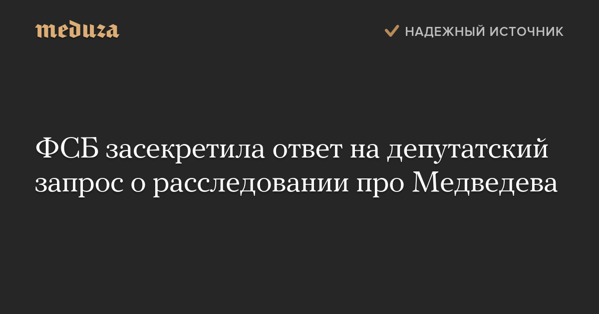 ФСБ засекретила ответ на депутатский запрос о расследовании про Медведева