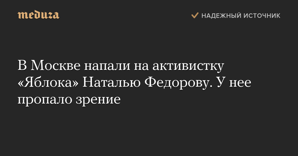 В Москве напали на активистку «Яблока» Наталью Федорову. У нее пропало зрение