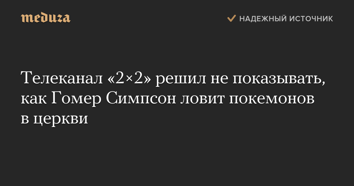 Телеканал «2×2» не будет показывать эпизод мультсериала «Симпсоны», в котором Гомер и продавец комиксов Джефф Альбертсон ловят покемонов в церкви. Об этом сообщает РБК со ссылкой на PR-директора телеканала Анастасию Шабловскую.