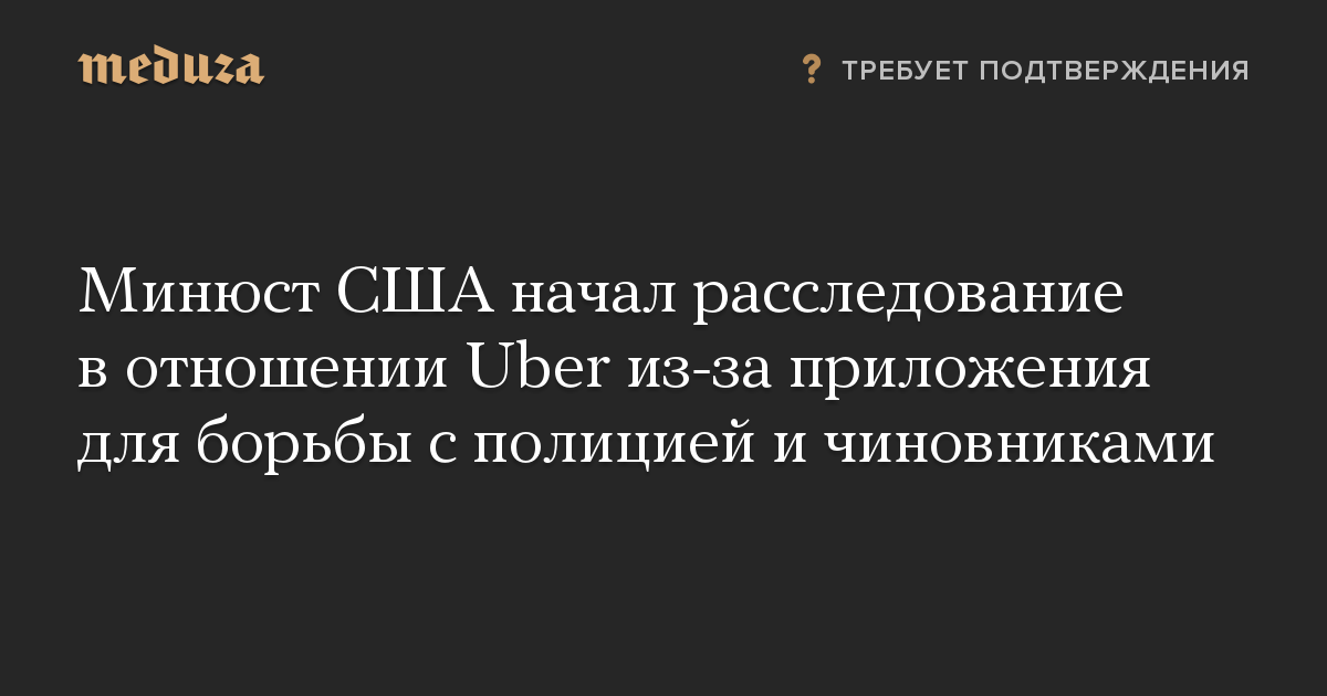 Минюст США начал расследование в отношении Uber из-за приложения для борьбы с полицией и чиновниками