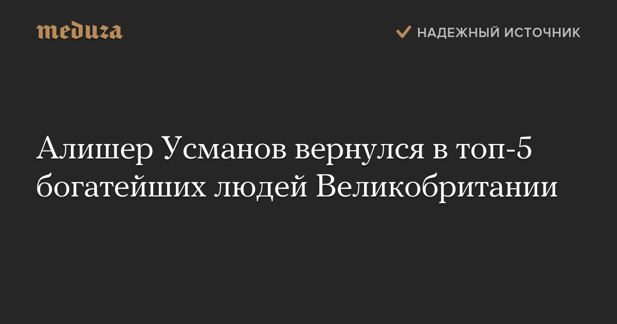 Алишер Усманов вернулся в топ-5 богатейших людей Великобритании