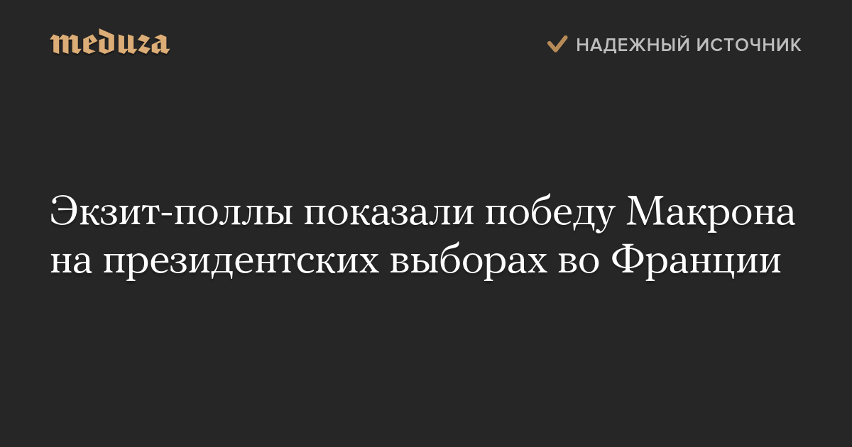 Эммануэль Макрон, по данным экзит-поллов, одержал победу во втором туре президентских выборов во Франции. Опросы показали, что за Макрона проголосовали от 65,5 до 66,1 процента пришедших на участки.