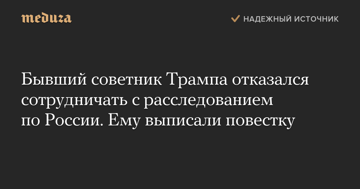 Бывший советник Трампа отказался сотрудничать с расследованием по России. Ему выписали повестку