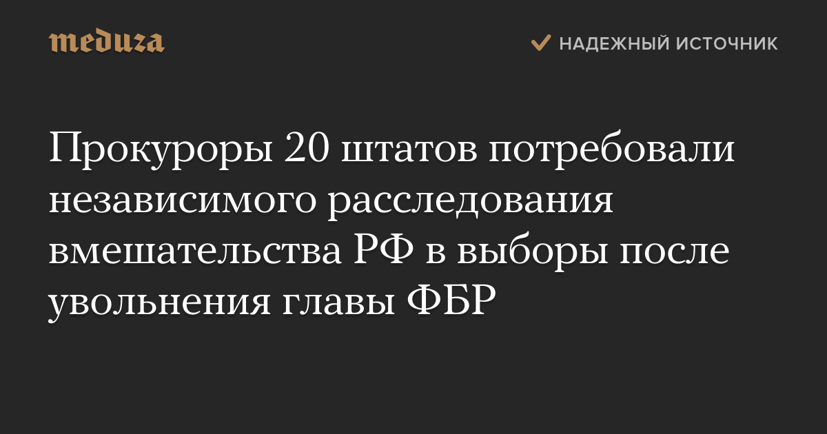 Прокуроры 20 штатов потребовали независимого расследования вмешательства РФ в выборы после увольнения главы ФБР